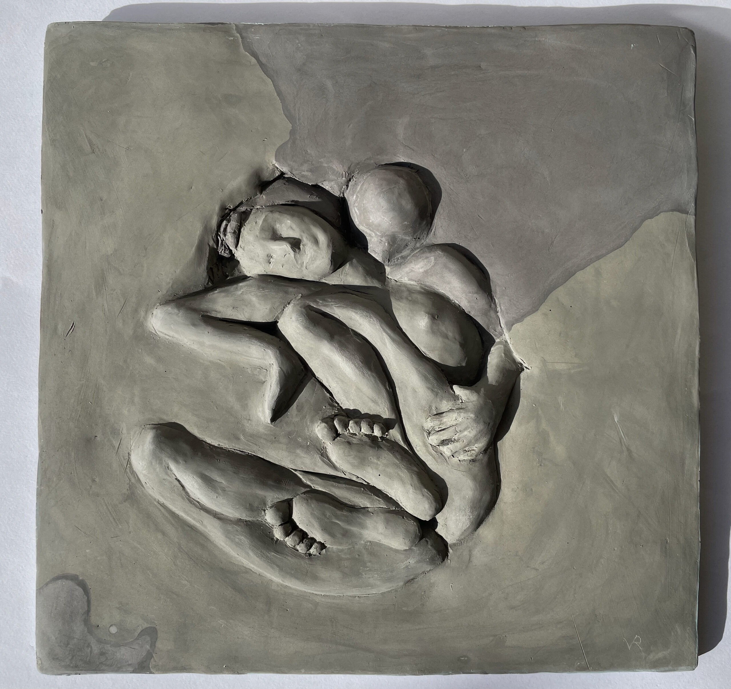 Haut-relief n°13 (2024) Résine, estampage de bronze 16x 26,5x6,5 cm, oeuvre exposée au salon érotique SaloXIII (juin 2025)