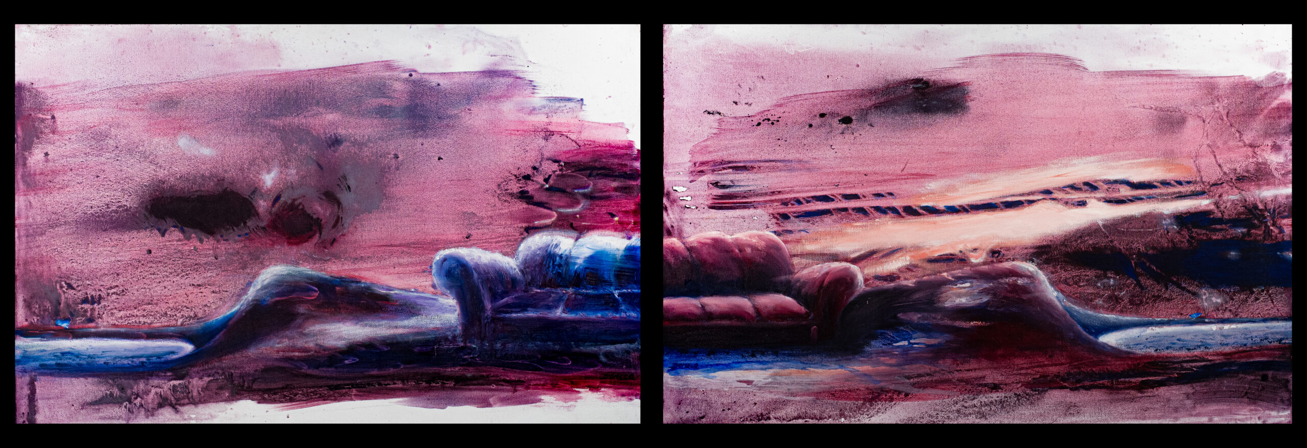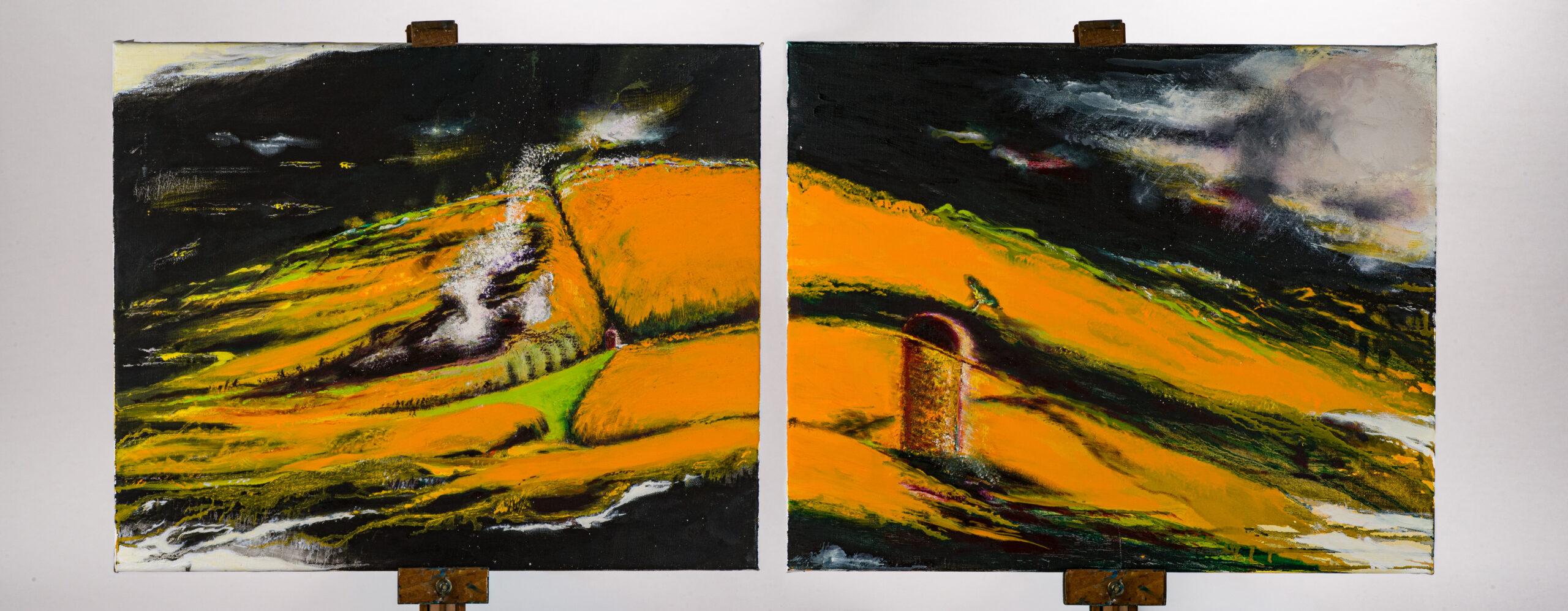 Bord de mondes, n°8, diptyque, 2 fois 52 x 42 cm, huile sur toile, 2022 :