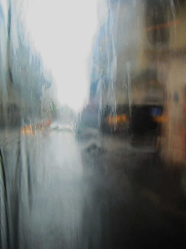 Toutes choses, et certes encore une fois (car je voudrais pouvoir dire ce qui pourtant saute aux yeux chez cette photographe), Isabelle Seilern a la poésie du banal apparent, montrant ce qu’il y a d’extraordinaire dans l’ordinaire pour peu qu’on ait l’œil attentif. Comment fixe-t-elle l’attention ? Par la vision tout en reflets, justement, qui produit ici le regard latéral qui éclaire, révèle ce qui est là. Vitrines, trottoirs, rues où aller, bitume délavé, verre dépoli, néons sous la pluie - autant de choses sur lequel l’objectif focalise en une prise de vue qui fait prisme, condense et liquéfie. Ensuite, l’artiste détermine et travaille son optique de manière à ce que « le » réel ainsi vu réfracte l’œil qui la voit. L’Œil au sens physique et psychique indissolublement emboîtés, et qui constitue ce qu’on nomme un « regard », une « manière de voir », le boîtier photographique filtrant ce qui se passe dans le boîtier crânien, depuis la cornée sensible jusque derrière la rétine, là où cela imprime sur le fond du cerveau.