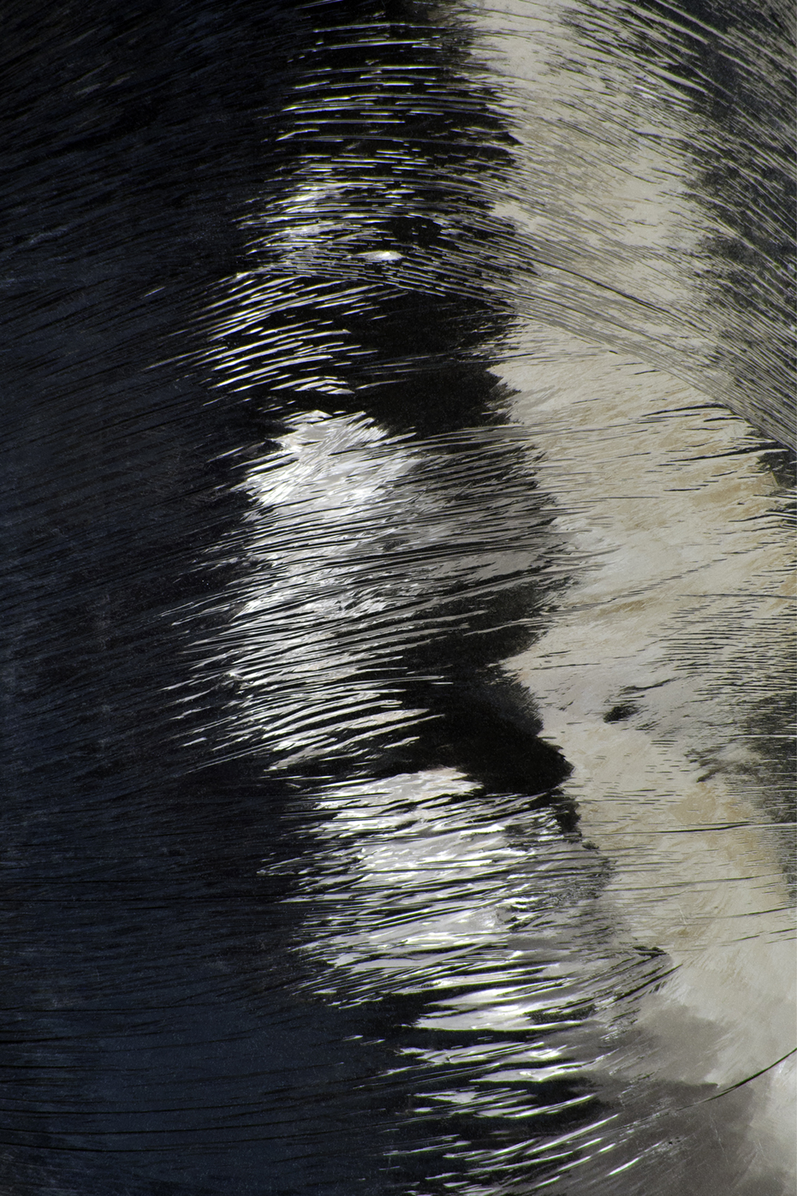 Papier 007c : pris en plongée un ourlet de papier fait bord et lèvres de cratère. Mais c’est encore trop dire, la précision est autre, jamais vue auparavant ni connue, mais désormais là, advenue. Rien qu’avec du papier froissé, éclairé sur fond aussi blanc que lui. Inner Landscape 2406 est aussi une vue en plongée d’une crête de papier froissé bistre, couleur qui dans ses plis brunit, se fronce et fronce au point que l’on « pourrait » y discerner ravins ou flancs de montagne. Et non, le papier ne se laisse pas oublier ; et c’est ainsi que l’artiste a, sciemment, déporter de toute réalité déjà donnée vers une réalité autre, inconnue jusque-là et innommable encore, toujours.